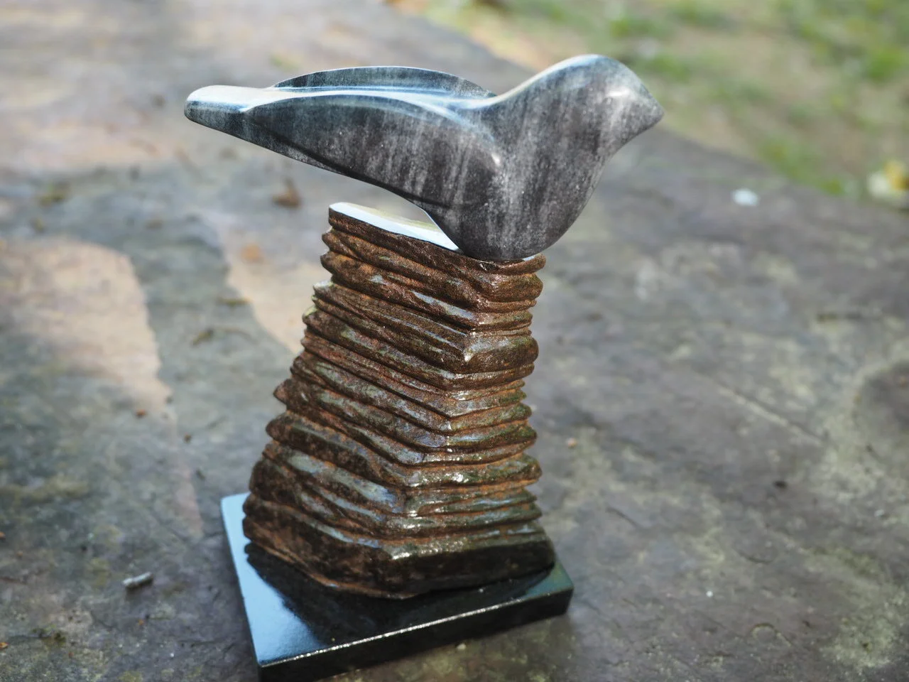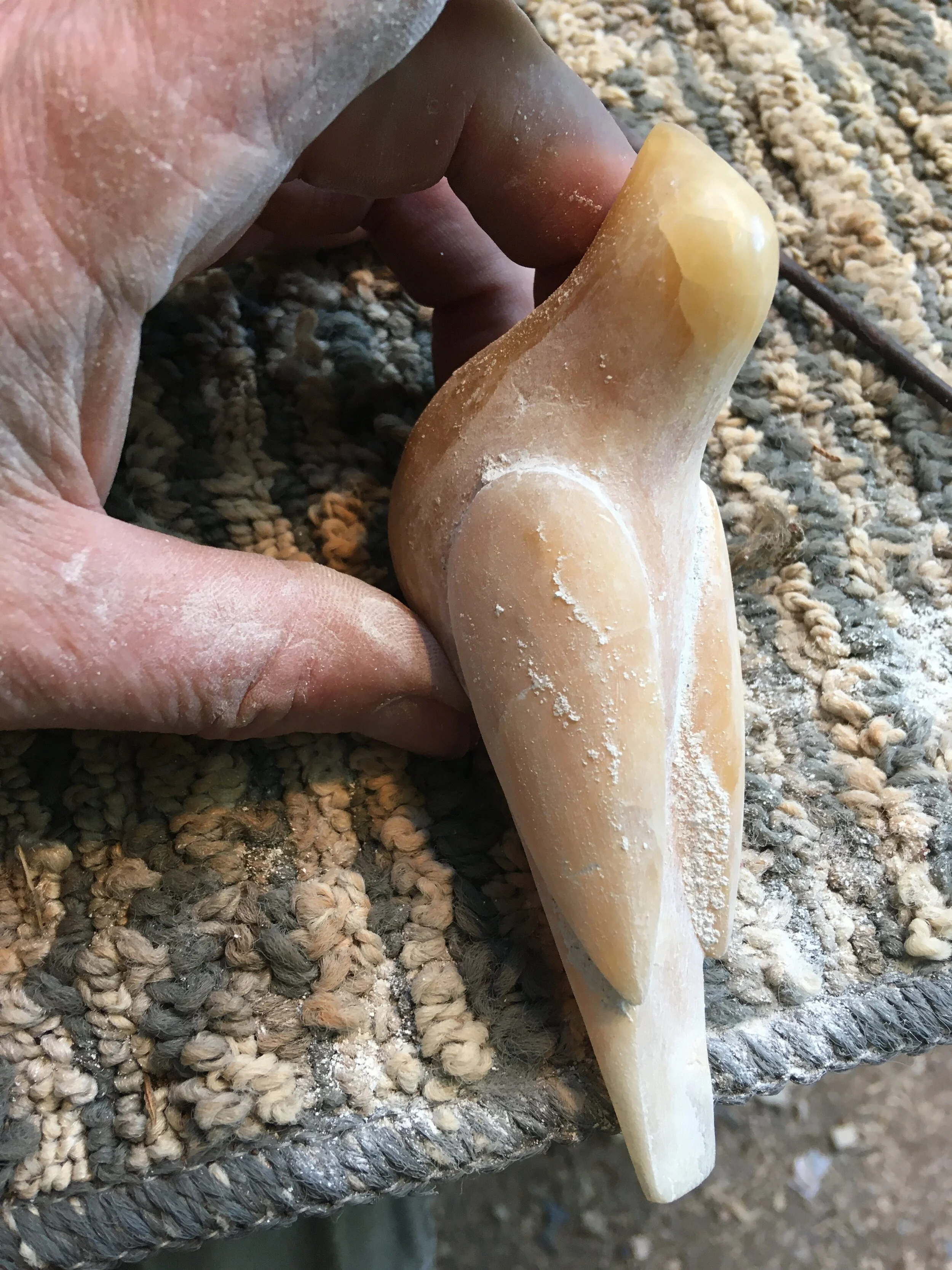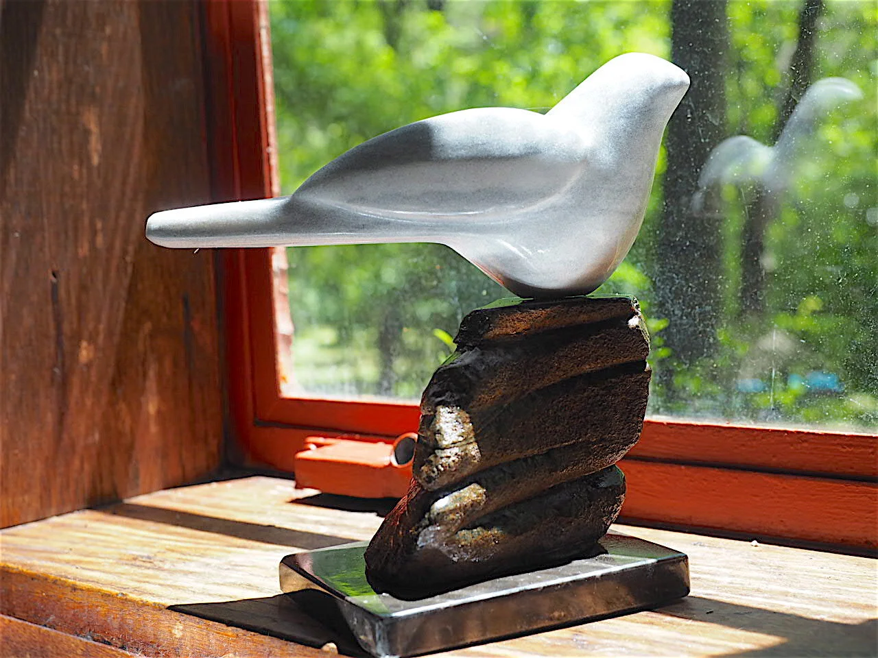 working patiently , the bird becomes refined in form and eventually polished to a high gloss surface