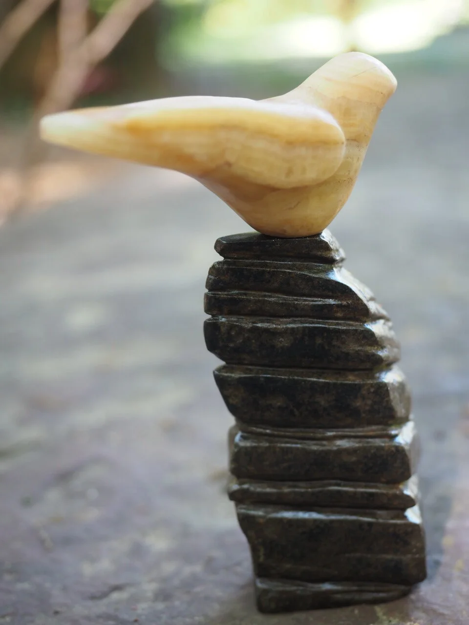 Harness the magic of this Yellow Onyx Bird by placing one in your sacred or meditative space to bring forth positivity. This is an ideal tool to work with to heal the body, mind, and spirit. Yellow onyx can include swirls of yellow, brown, and cream ; carved and impeccably polished from natural stone.